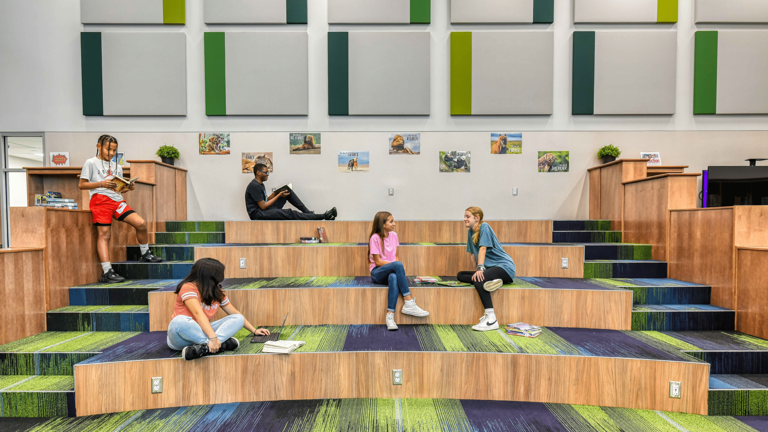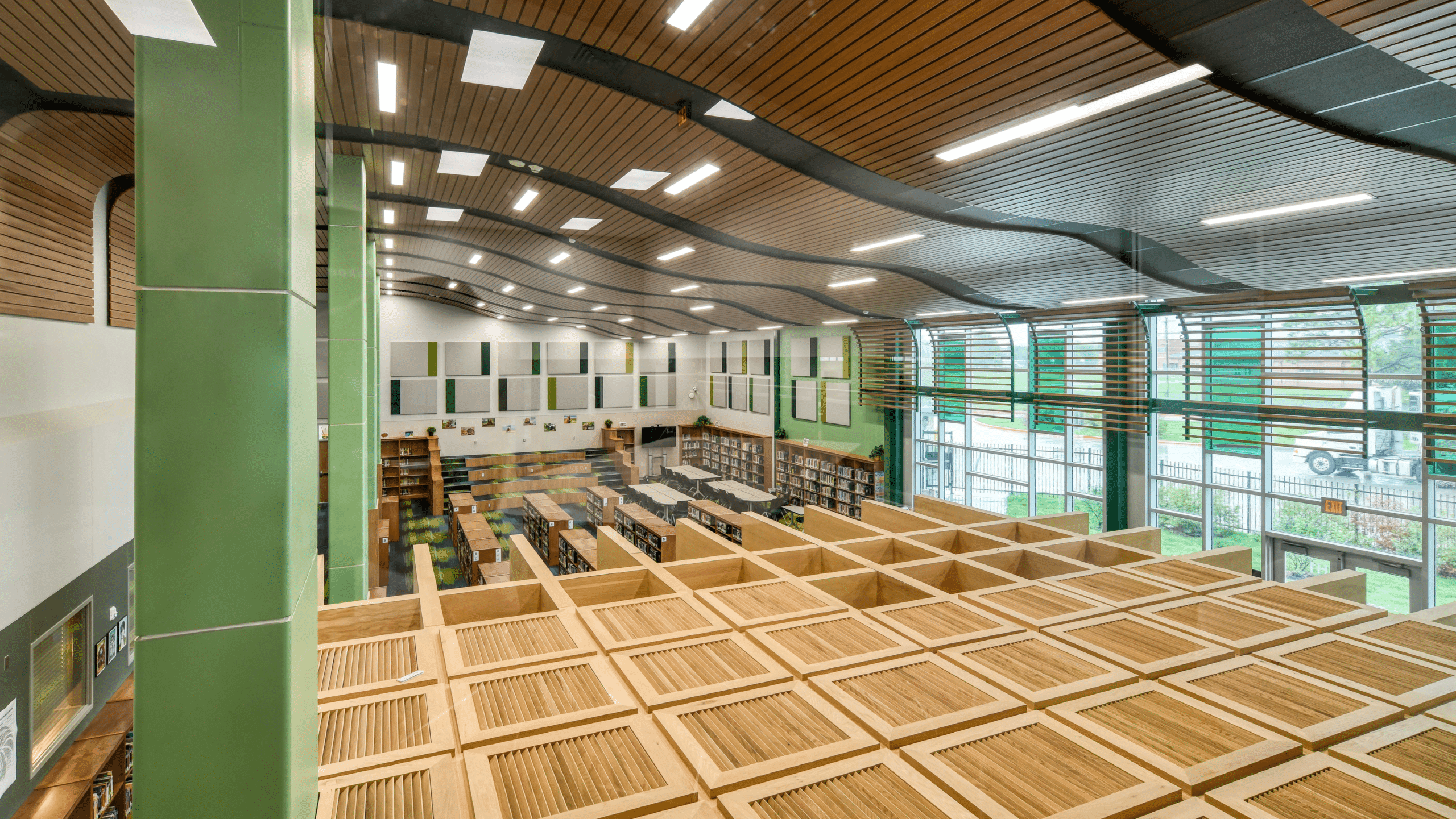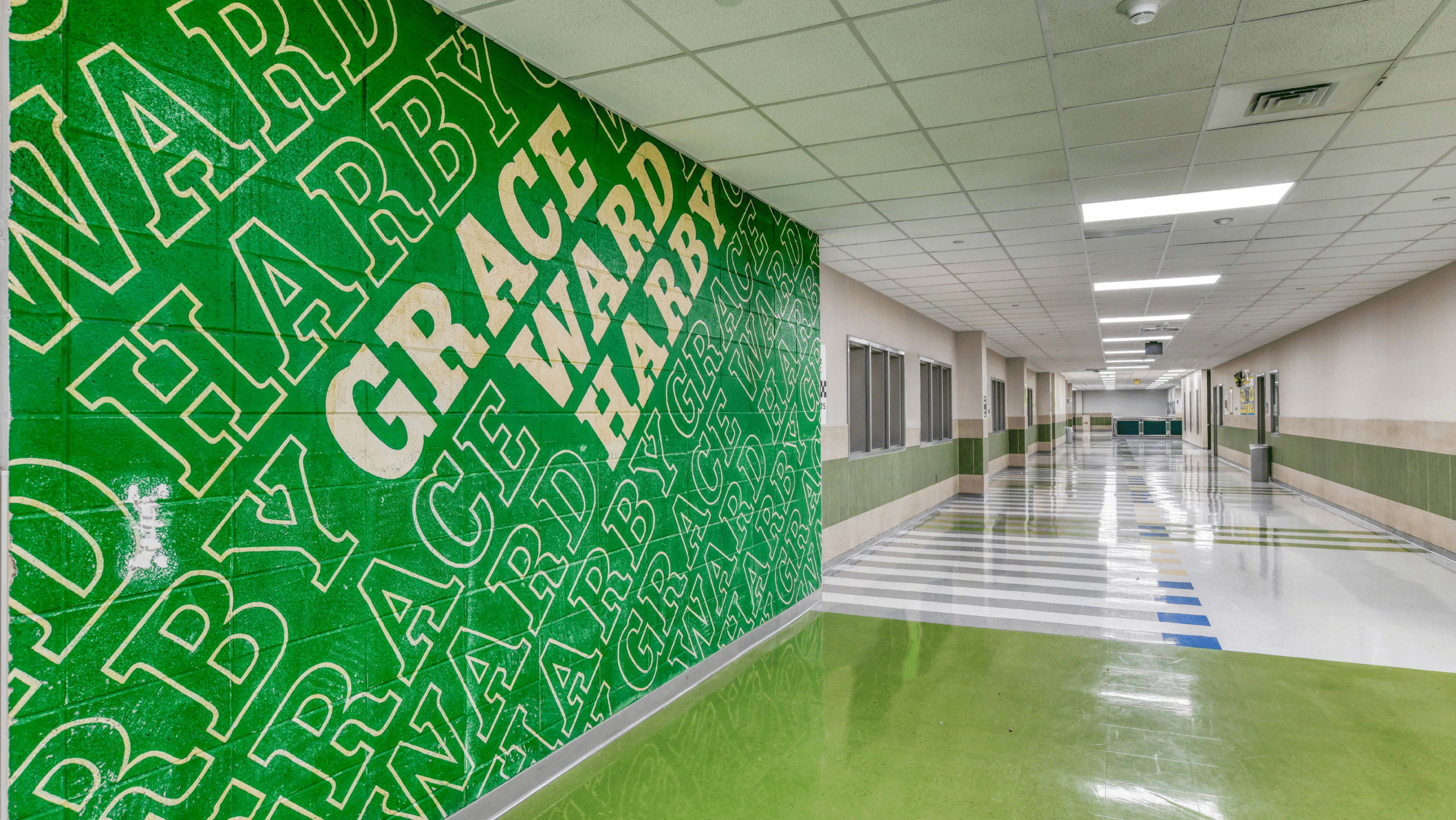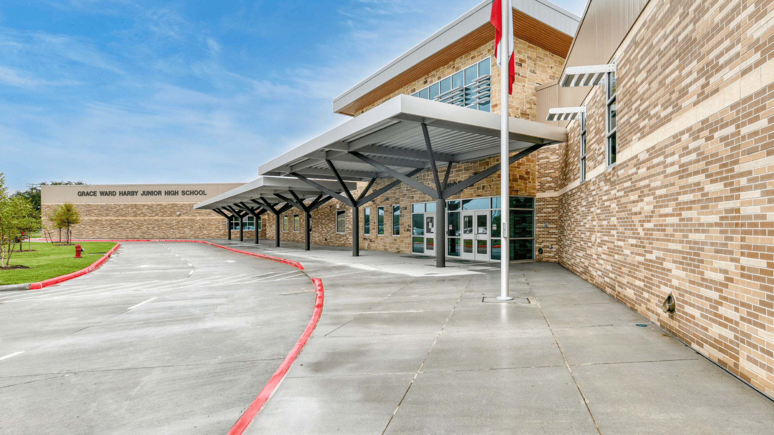 Originally constructed in 1981, the renovation and expansion of Grace Ward Harby Junior High School enabled student capacity to increase from 800 to 1,000. A classroom wing was added between two existing buildings, including 22 new classrooms and a generous, flexible learning space. The existing leaking swimming pool was filled in and converted into new locker room spaces and a weight room. The library was relocated from the center of the building via an addition near the cafeteria. The design also featured a new black box theater, stage, band and choir spaces, and new administrative offices with secure entrances.